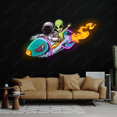 Buckle up for an out-of-this-world adventure with 'Unlikely Explorers' LED Neon x Print sign! Watch as an astronaut and an alien defy gravity in a flamin' rocket ship, ready to explore the cosmos in style. Hang this whimsical masterpiece and let its luminous glow ignite laughter and curiosity. Join the most unexpected duo in the galaxy on a journey that's bound to be as wild as it is wonderful! 🚀👽Neon Color: Yellow, Pink, Orange and TealFor exact measurements refer to the cm. The first size in the description is always the longest side of the sign. 60cm x 30cm (2ft x 1ft) 75cm x 36cm (2.5ft x 1.2ft)90cm x 43cm (3ft x 1.4ft)105cm x 49cm (3.5ft x 1.6ft)120cm x 56cm (4ft x 1.9ft)#space #alien #adventure