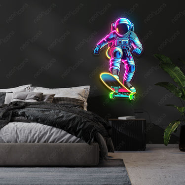 Get ready to shred through the cosmos with 'Space Rider' LED Neon x Print sign! This interstellar masterpiece features an astronaut carving through the cosmic waves on a skateboard, blending gravity-defying tricks with out-of-this-world charm. Hang it up and let its luminous glow ignite your inner adventurer. Whether you're a space cadet or a skateboarding enthusiast, embrace the cosmic thrill ride!Neon Color: Yellow, Pink, Green, Orange and Ice BlueFor exact measurements refer to the cm. The first size in the description is always the longest side of the sign. 60cm x 38cm (2ft x 1.3ft)75cm x 47cm (2.5ft x 1.9ft)90cm x 56cm (3ft x 1.9ft)105cm x 65cm (3.5ft x 2.2ft)120cm x 72cm (4ft x 2.4ft) #cruiser #space #astronaut