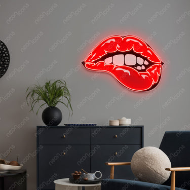 Spice up your room with "Taste of Your Lips"! This LED Neon x Print sign depicts a mouth seductively biting on its bottom lip. It’s playful, bold, and a little cheeky—perfect for adding a touch of flirtation to any space. Light up and turn up the heat!Neon Color: RedSize: For exact measurements refer to the cm. The first size in the description is always the longest side of the sign. 60cm x 43cm (2ft x 1.5ft) 75cm x 53cm (2.5ft x 1.8ft)90cm x 63cm (3ft x 2.1ft)105cm x 73cm (3.5ft x 2.4ft)120cm x 84cm (4ft x 2.8ft) #lips #cheeky