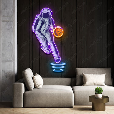 Shoot for the stars with 'Astroballer' LED Neon x Print sign! Watch in awe as an astronaut shows off some zero-gravity hoops skills, blending cosmic athleticism with intergalactic flair. Hang this luminous masterpiece and let its glow elevate your space to new heights of excitement. Whether you're a basketball fan or a space enthusiast, join the cosmic court and make every shot a slam dunk! 🏀🚀Neon Color: Purple, Orange and Ice Blue Size: For exact measurements refer to the cm. The first size in the description is always the longest side of the sign. 60cm x 34cm (2ft x 1.1ft) 75cm x 42cm (2.5ft x 1.4ft) 90cm x 50cm (3ft x 1.7ft) 105cm x 58cm (3.5ft x 1.9ft) 120cm x 65cm (4ft x 2.2ft) #space #astronaut #galatic #sports #basketball #NBA