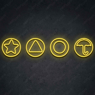 Bringen Sie die Spannung und Spannung der Erfolgsserie „Squid Game“ mit diesen fesselnden LED-Neonschildern in Ihre vier Wände. Perfekt für Fans der Serie oder alle, die ihrer Einrichtung ein markantes, markantes Statement verleihen möchten. Diese Schilder interpretieren die legendären Symbole und Motive neu, die die Fantasie der Welt beflügelten.