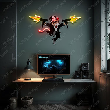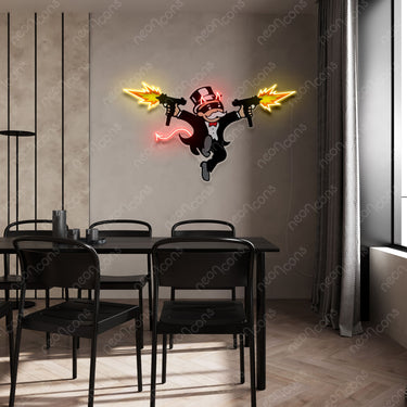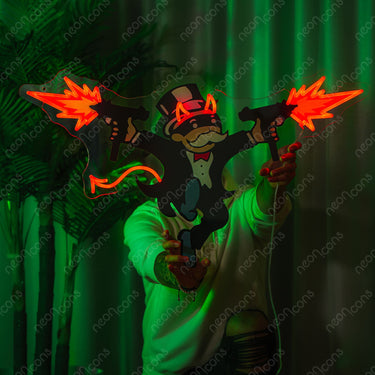 Wir präsentieren „A Violent Monopoly“: Unser LED-Neon-x-Print-Schild zeigt den legendären Monopoly-Mann mit zwei Pistolen in leuchtendem Neonlicht. Mit diesem coolen Stück kannst du richtig abkassieren. Perfekt für Spielefans und alle, die schwarzen Humor mögen. Erwecke deinen Raum mit Nostalgie und einem verspielten Touch! Neonfarbe: Gelb und Rot Bitte beachten: Das Titelbild ist eine Sonderanfertigung für rote LED-Neons. Unser Design ist sowohl mit roten als auch mit gelben LEDs erhältlich. Wenn Sie nur Rot bevorzugen, senden Sie uns bitte eine E-Mail über den unten stehenden Link. Größe: Genaue Maße entnehmen Sie bitte der cm-Angabe. Die erste Größe in der Beschreibung ist immer die längste Seite des Schildes. 75 cm x 46 cm (2,5 Fuß x 1,5 Fuß) 90 cm x 54 cm (3 Fuß x 1,8 Fuß) 105 cm x 63 cm (3,5 Fuß x 2,1 Fuß) 120 cm x 71 cm (4 Fuß x 2,4 Fuß) #Monopoly #Spiel #nostalgisch