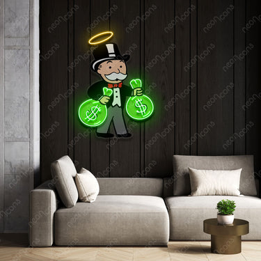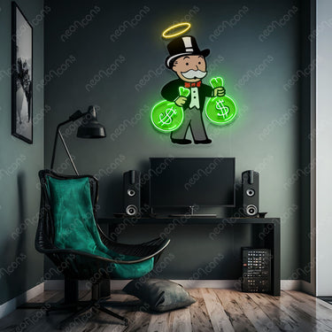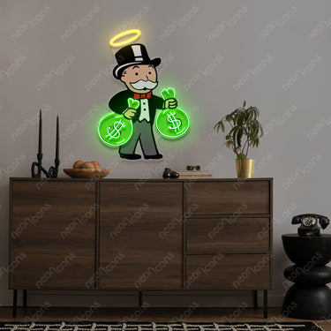 Mit „Advance To Go Collect 200“ punkten Sie richtig! Dieses LED-Neon-x-Print-Schild zeigt den engelsgleichen Rich Uncle Penny Bags mit großen Geldsäcken. Perfekt für Spieleliebhaber und alle, die ein bisschen spielerische Ironie zu schätzen wissen. Bringen Sie einen Hauch von Nostalgie und Spaß in Ihr Zimmer! Neonfarbe: Gelb und Grün Größe: Genaue Maße entnehmen Sie bitte der cm-Angabe. Die erste Größe in der Beschreibung ist immer die längste Seite des Schildes. 60 cm x 45 cm (2 Fuß x 1,4 Fuß) 75 cm x 56 cm (2,5 Fuß x 1,9 Fuß) 90 cm x 66 cm (3 Fuß x 2,2 Fuß) 105 cm x 77 cm (3,5 Fuß x 2,6 Fuß) 120 cm x 88 cm (4 Fuß x 2,9 Fuß) #Monopoly #Spiel #Geld