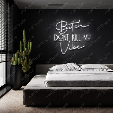 Bleib cool und halte die Energie hoch mit „Bitch Don't Kill My Vibe“! Dieses LED-Neonschild ist perfekt, um die richtige Stimmung zu schaffen und negative Schwingungen abzuwehren. Es ist auffällig, hell und voller Charakter. Ideal für jeden Raum, der eine Dosis Positivität und Stil braucht. Neonfarbe: Volltonfarbe(n) Größe: Genaue Maße entnehmen Sie bitte der cm-Angabe. Die erste Größe in der Beschreibung ist immer die längste Seite des Schildes. 60 cm x 58 cm (2 Fuß x 2 Fuß) 75 cm x 72 cm (2,5 Fuß x 2,4 Fuß) 90 cm x 87 cm (3 Fuß x 2,9 Fuß) 105 cm x 101 cm (3,5 Fuß x 3,4 Fuß) 120 cm x 105 cm (4 Fuß x 3,8 Fuß) #Motivation #frech #positiv