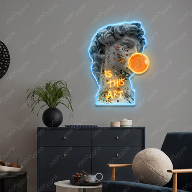 Beleben Sie Ihren Raum mit einer frischen Interpretation klassischer Kunst – mit unserem LED-Neon-x-Print-Schild, inspiriert von der Davidstatue. „Is this Art“ ist ein außergewöhnliches Werk, das die zeitlose Anmut von Michelangelos Meisterwerk mühelos mit dem fesselnden Reiz und der lebendigen Energie der Pop-Art verbindet und so ein wahrhaft unvergleichliches Deko-Statement schafft. Erhellen Sie Ihre Umgebung mit dieser zeitgenössischen Fusion aus künstlerischer Tradition und rebellischem Geist. Unser Neonschild ist in drei faszinierenden Varianten erhältlich: Eine zeigt die Reinheit von „Nude“, eine andere ist mit „Black Line Tattoos“ verziert und die letzte ist mit „traditionellen Tattoos“ geschmückt. Neonfarbe: „Nude“ Eisblau & Pink ODER „Black Line Tats“ Eisblau & Pink ODER „Traditional Tats“ Eisblau & Orange Größe: Genaue Maße entnehmen Sie bitte der cm-Angabe. Die erste Größe in der Beschreibung ist immer die längste Seite des Schildes. 60 cm x 45 cm (2 Fuß x 1,5 Fuß) 75 cm x 56 cm (2,5 Fuß x 1,9 Fuß) 90 cm x 67 cm (3 Fuß x 2,2 Fuß) 105 cm x 78 cm (3,5 Fuß x 2,6 Fuß) 120 cm x 88 cm (4 Fuß x 2,9 t) #Statue #Kaugummi #Körperkunst