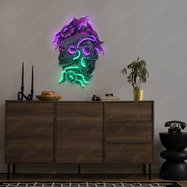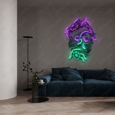 Verleihen Sie Ihrem Raum einen Hauch von Verspieltheit mit dem LED-Neon-x-Print-Schild „Bones in Bloom“ mit einem Haufen Totenköpfe, auf denen Blumen blühen. Hängen Sie dieses originelle Stück auf und erleben Sie, wie Ihre Wände mit einer Mischung aus Makabrem und Schönheit zum Leben erwachen. Von trendigen Kunstgalerien bis hin zu eklektischen Wohnzimmern – verleihen Sie Ihrer Einrichtung einen Hauch von verspielter Dunkelheit! 💀🌸 Neonfarbe: Lila und Blaugrün Größe: Genaue Maße entnehmen Sie bitte der cm-Angabe. Die erste Größe in der Beschreibung ist immer die längste Seite des Schildes. 60 cm x 42 cm (2 Fuß x 1,4 Fuß) 75 cm x 55 cm (2,5 Fuß x 1,8 Fuß) 90 cm x 65 cm (3 Fuß x 2,2 Fuß) 105 cm x 76 cm (3,5 Fuß x 2,5 Fuß) 120 cm x 87 cm (4 Fuß x 2,9 Fuß) #Totenkopf #Blumen #Blume #mystisch