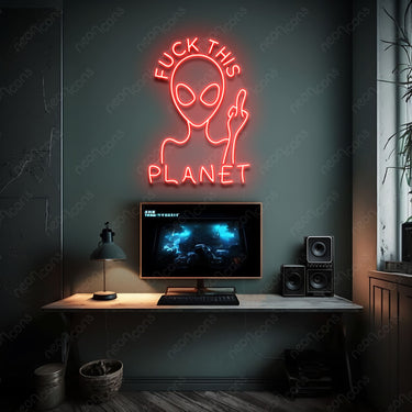 Sag es mit intergalaktischem Flair: Das LED-Neonschild „Fuck This Planet“ bringt deinen kosmischen Frust mutig zum Ausdruck! Mit einem frechen Alien, der der Erde eine nicht ganz so subtile Geste zeigt, ist es perfekt für die Momente, in denen du es einfach satt hast. Hänge es stolz auf und lass sein Leuchten Lachen und Solidarität unter deinen Mitreisenden im Weltraum entfachen. Umarme die kosmische Frechheit! 🖕 Neonfarbe: Volltonfarbe(n) Größe: Genaue Maße entnehmen Sie bitte der cm-Angabe. Die erste Größe in der Beschreibung ist immer die längste Seite des Schildes. 60 cm x 42 cm (2 Fuß x 1,4 Fuß) 75 cm x 53 cm (2,5 Fuß x 1,8 Fuß) 90 cm x 64 cm (3 Fuß x 2,1 Fuß) 105 cm x 74 cm (3,5 Fuß x 2,5 Fuß) 120 cm x 84 cm (4 Fuß x 2,8 Fuß) #Weltraum #Alein #Humor