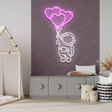 Schweben Sie mit diesem skurrilen LED-Neonschild in den siebten Himmel! Beobachten Sie, wie ein Astronaut, getragen von drei bunten Ballons, in himmlische Glückseligkeit aufsteigt. Hängen Sie dieses leuchtende Meisterwerk auf und lassen Sie sich von seinem Glanz inspirieren und Ihre Fantasie beflügeln. Begeben Sie sich auf eine kosmische Reise in die höchsten Sphären des Glücks und der Wunder! 🎈🚀 Neonfarbe: Weiß und Volltonfarbe(n) Bitte beachten: Wenn Sie die Option RGB auswählen, ändert sich die Farbe der Ballons, während der Rest des Schildes weiß ist. Größe: Genaue Maße entnehmen Sie bitte der cm-Angabe. Die erste Größe in der Beschreibung ist immer die längste Seite des Schildes. 90 cm x 52 cm (3 Fuß x 1,8 Fuß) 105 cm x 60 cm (3,5 Fuß x 2 Fuß) 120 cm x 68 cm (4 Fuß x 2,3 Fuß) #Weltraum #Astronaut #Liebe