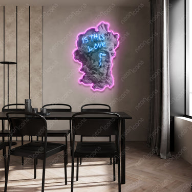 Beleben Sie Ihre Räume mit einer frischen Interpretation klassischer Kunst – unserem Neonschild, inspiriert von Renaissance-Statuen. „Is this Love“ ist ein außergewöhnliches Stück, das die zeitlose Anmut von Michelangelos Meisterwerken mühelos mit dem fesselnden Charme und der lebendigen Energie der Pop-Art verbindet und so ein wahrhaft unvergleichliches Deko-Statement schafft. Erhellen Sie Ihre Umgebung mit dieser zeitgenössischen Fusion aus künstlerischer Tradition und rebellischem Geist. Wir bieten zwei faszinierende Varianten: eine mit der Reinheit von „Nude“, eine andere mit schwarzen Linien-Tattoos. Holen Sie es sich noch heute und verleihen Sie Ihrem Zuhause oder Geschäft einen Hauch von Rebellion. Neonfarben: Eisblau und Pink mit „nackter“ ODER „tätowierter“ Haut Größe: Genaue Maße entnehmen Sie bitte der cm-Angabe. Die erste Größe in der Beschreibung ist immer die längste Seite des Schildes. 60 cm x 43 cm (2 Fuß x 1,4 Fuß) 75 cm x 53 cm (2,5 Fuß x 1,8 Fuß) 90 cm x 63 cm (3 Fuß x 2,1 Fuß) 105 cm x 73 cm (3,5 Fuß x 2,4 Fuß) 120 cm x 83 cm (4 Fuß x 2,8 Fuß) #romantische #Statue