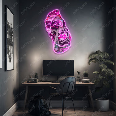 Transformez votre espace avec une réinterprétation artistique extraordinaire : découvrez notre enseigne néon représentant Aphrodite, ornée de graffitis rebelles, judicieusement nommée « Bad Made Beautiful ». Un chef-d'œuvre ? Cette création exceptionnelle allie harmonieusement l'allure classique du visage d'Aphrodite au charme avant-gardiste du street art, insufflant l'esprit vibrant du Pop Art à une décoration unique. Illuminez votre environnement avec cette fusion contemporaine d'élégance artistique et de défi. Couleur néon : rose Taille : Pour les mesures exactes, se référer aux cm. La première taille dans la description correspond toujours au côté le plus long du panneau. 60 cm x 42 cm (2 pi x 1,4 pi) 75 cm x 52 cm (2,5 pi x 1,7 pi) 90 cm x 62 cm (3 pi x 2,1 pi) 105 cm x 72 cm (3,5 pi x 2,4 pi) 120 cm x 82 cm (4 pi x 2,7 pi) #beauté #streetart #statue