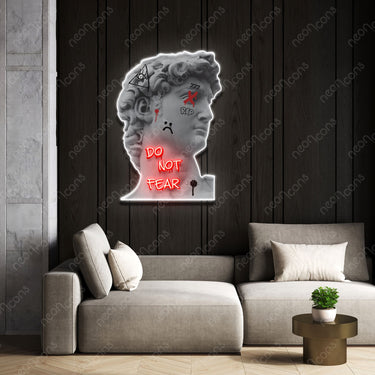 Dépassez l'ordinaire et sublimez votre espace avec la réinterprétation unique d'un chef-d'œuvre classique : découvrez notre enseigne LED Neon x Print « Do Not Fear », ornée de la tête emblématique de la statue de David ornée de graffitis rebelles. De l'art ? Sans aucun doute ! Cette création exceptionnelle allie harmonieusement l'élégance intemporelle du chef-d'œuvre de Michel-Ange à l'audace du street art, incarnant l'essence même du Pop Art. Couleur néon : rouge et blanc Taille : Pour les mesures exactes, se référer aux cm. La première taille dans la description correspond toujours au côté le plus long du panneau. 60 cm x 44 cm (2 pi x 1,5 pi) 75 cm x 54 cm (2,5 pi x 1,8 pi) 90 cm x 65 cm (3 pi x 2,2 pi) 105 cm x 75 cm (3,5 pi x 2,5 pi) 120 cm x 86 cm (4 pi x 2,9 pi) #force #statue #courageux